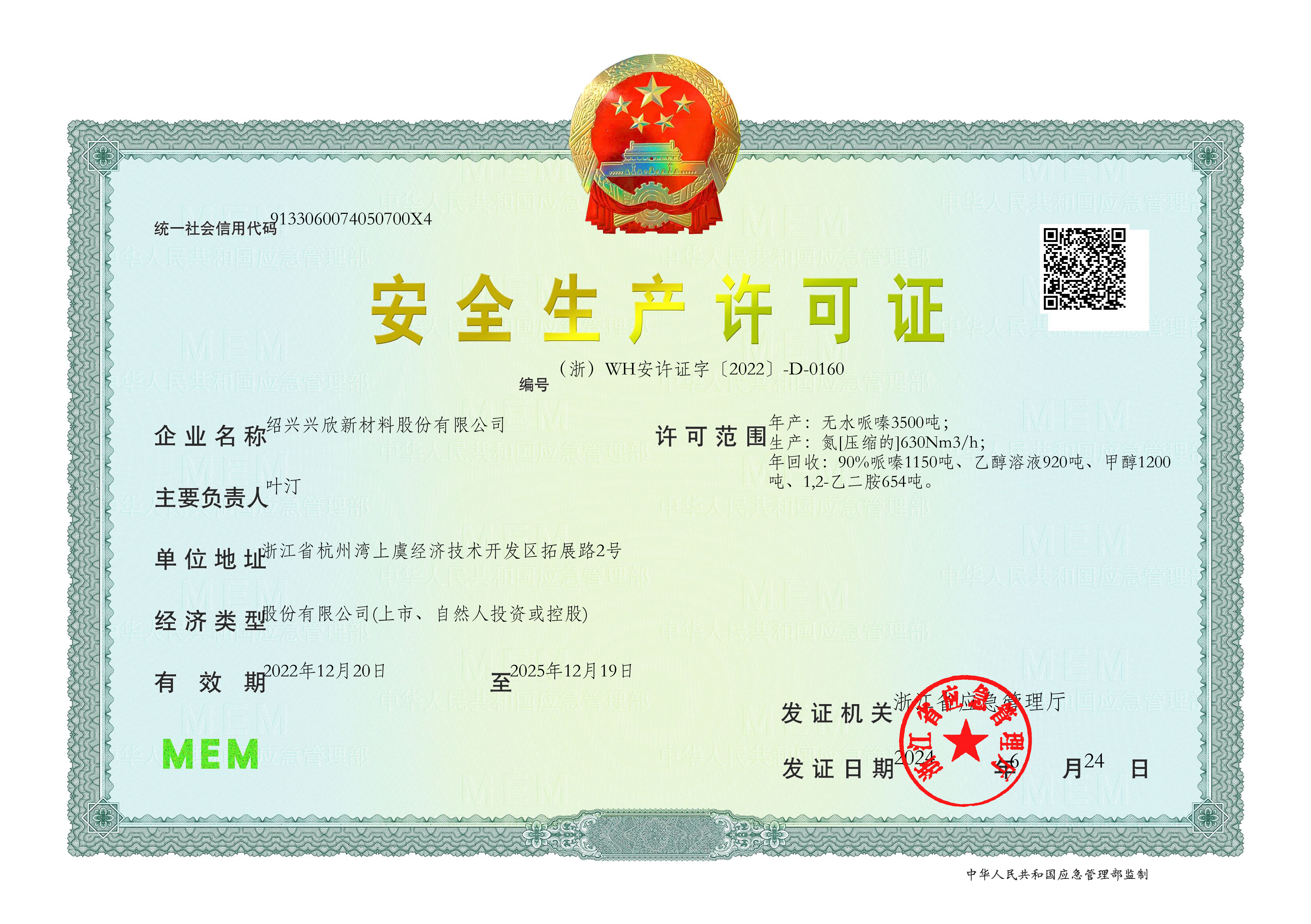 紹興興欣新材料股份有限公司成立于2002年06月27日,占地面積122畝,位于杭州灣上虞經濟技術開發區拓展路2號,現有職工200余人,專業技術人員50余人;博士、碩士研究生30余人組成的一支知識型、專業化的技術科研團隊。公司面向全球市場,專業開發電子化學品、環保化學品、醫藥中間體、高分子材料等先進新材料重點領域的省級科技型企業;建有浙江上虞、安徽東至兩個生產基地。目前為“國家高新技術企業”、浙江省“隱形冠軍”企業、浙江省專精特新中小企業;建有“省級”研究開發中心,共建天津大學浙江紹興研究院電子化學品研發中心。